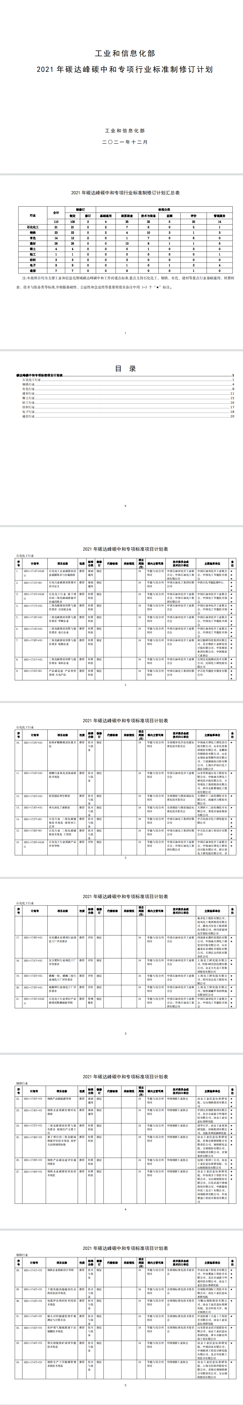 為發(fā)揮標準在推進工業(yè)領(lǐng)域碳達峰碳中和工作的引領(lǐng)和規(guī)范作用,我部編制完成了2021年碳達峰碳中和專項行業(yè)標準制修訂項目計劃。現(xiàn)印發(fā)給你們,請認真組織落實。有關(guān)事項通知如下: