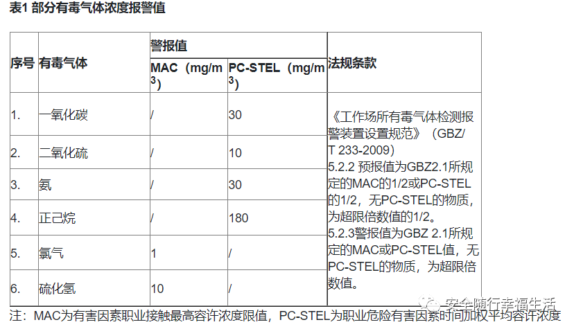 常見(jiàn)可燃、毒性氣體量程及報(bào)警值設(shè)定