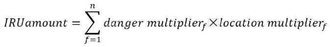 定義綜合指標火災風險單元(ignition risk unit,IRU)。每次火災的具體考核中,加入“地理分布因子Location multiplier”和“火災危險等級因子danger multiplier”,計算公式為: