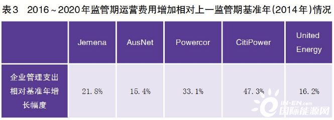 加強輸電設備防山火管理,也增加了各配電公司的運營費用支出。維多利亞州5家配電公司2016~2020年監(jiān)管期運營費用增加相對上一監(jiān)管期基準年(2014年)情況見表3。增加原因除了勞動力成本的上漲外,主要就是履行防山火義務增加的運營費用。