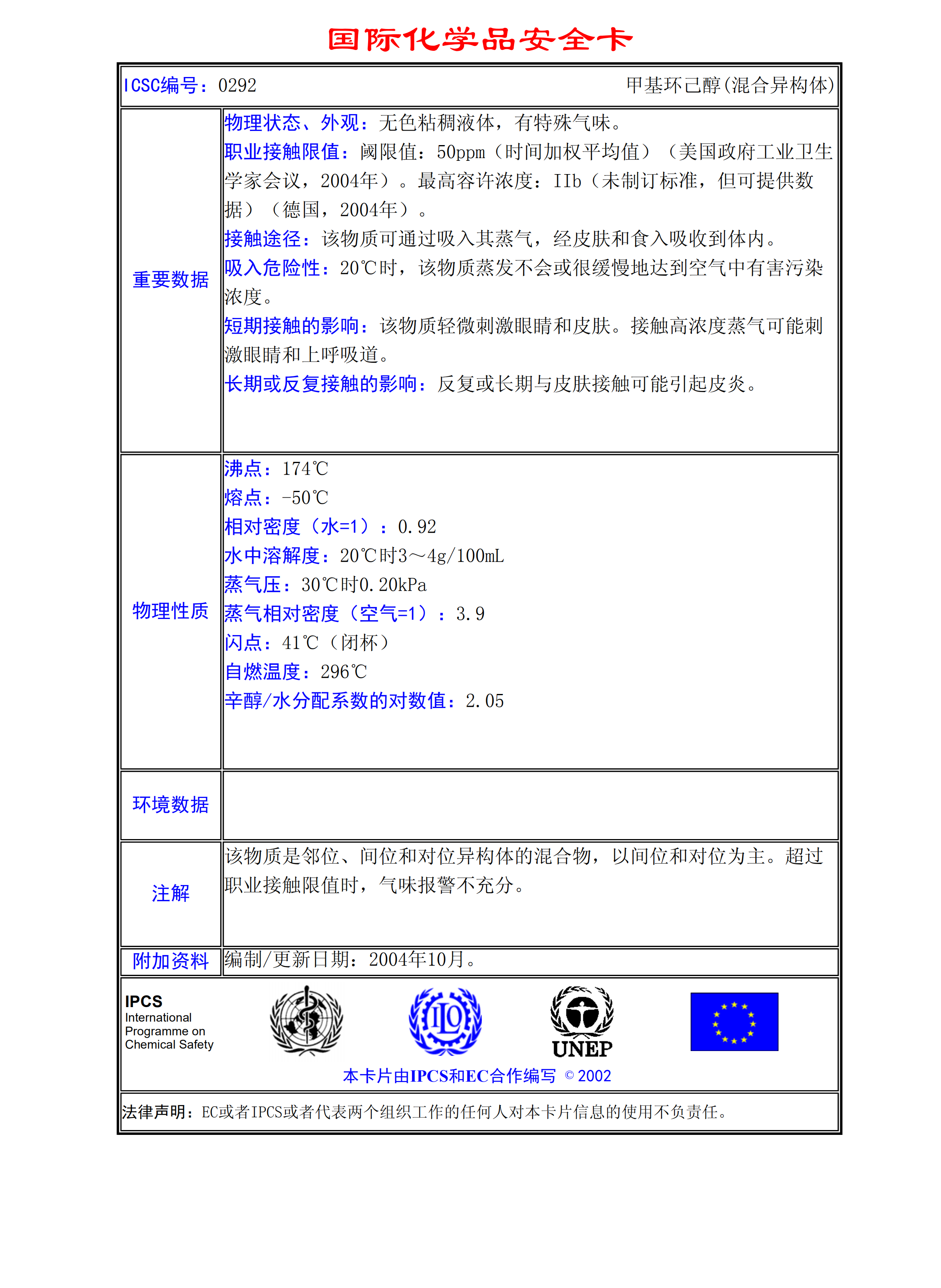 甲基環(huán)己醇(混合異構(gòu)體)MSDS
