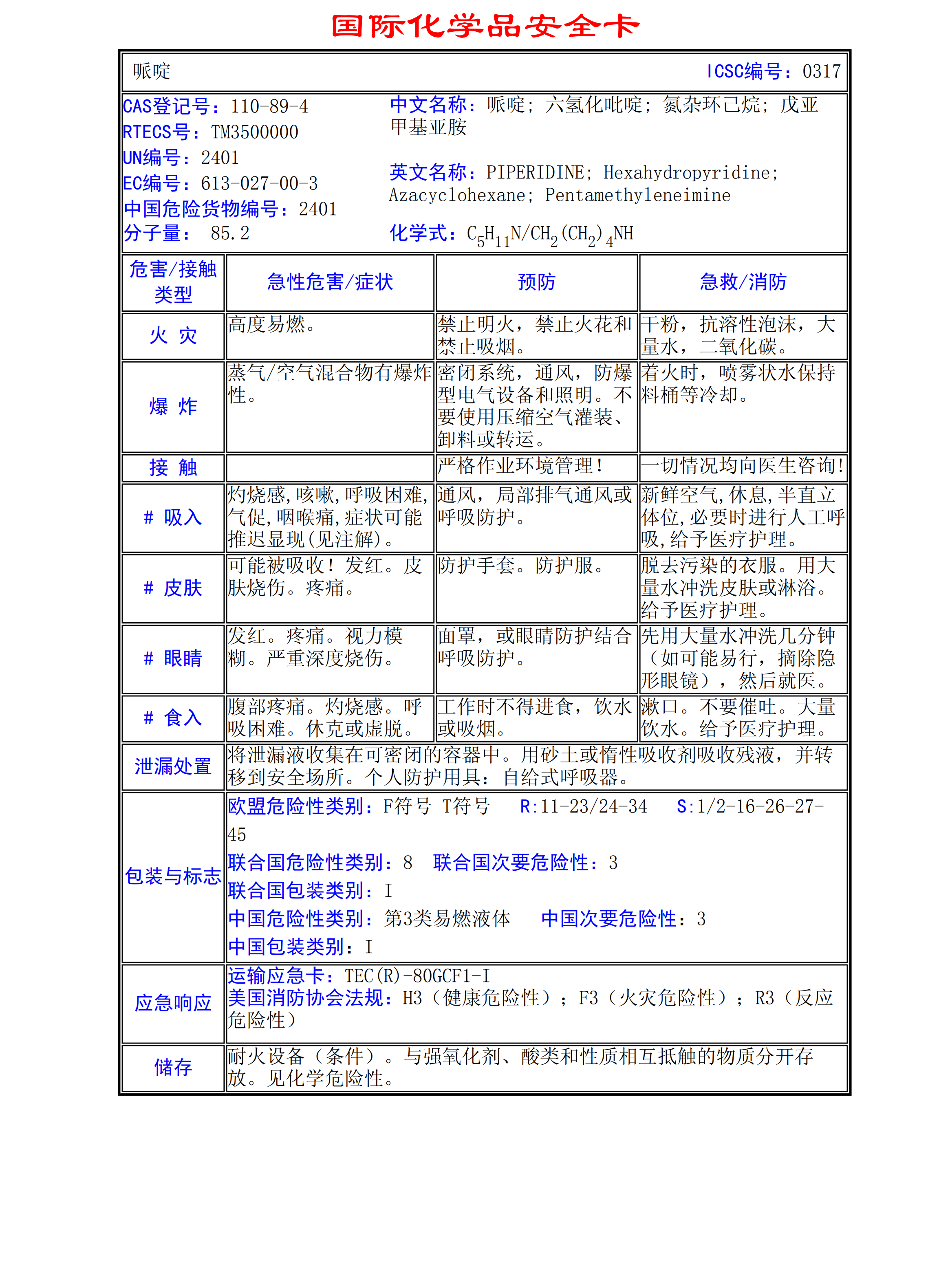 哌啶MSDS