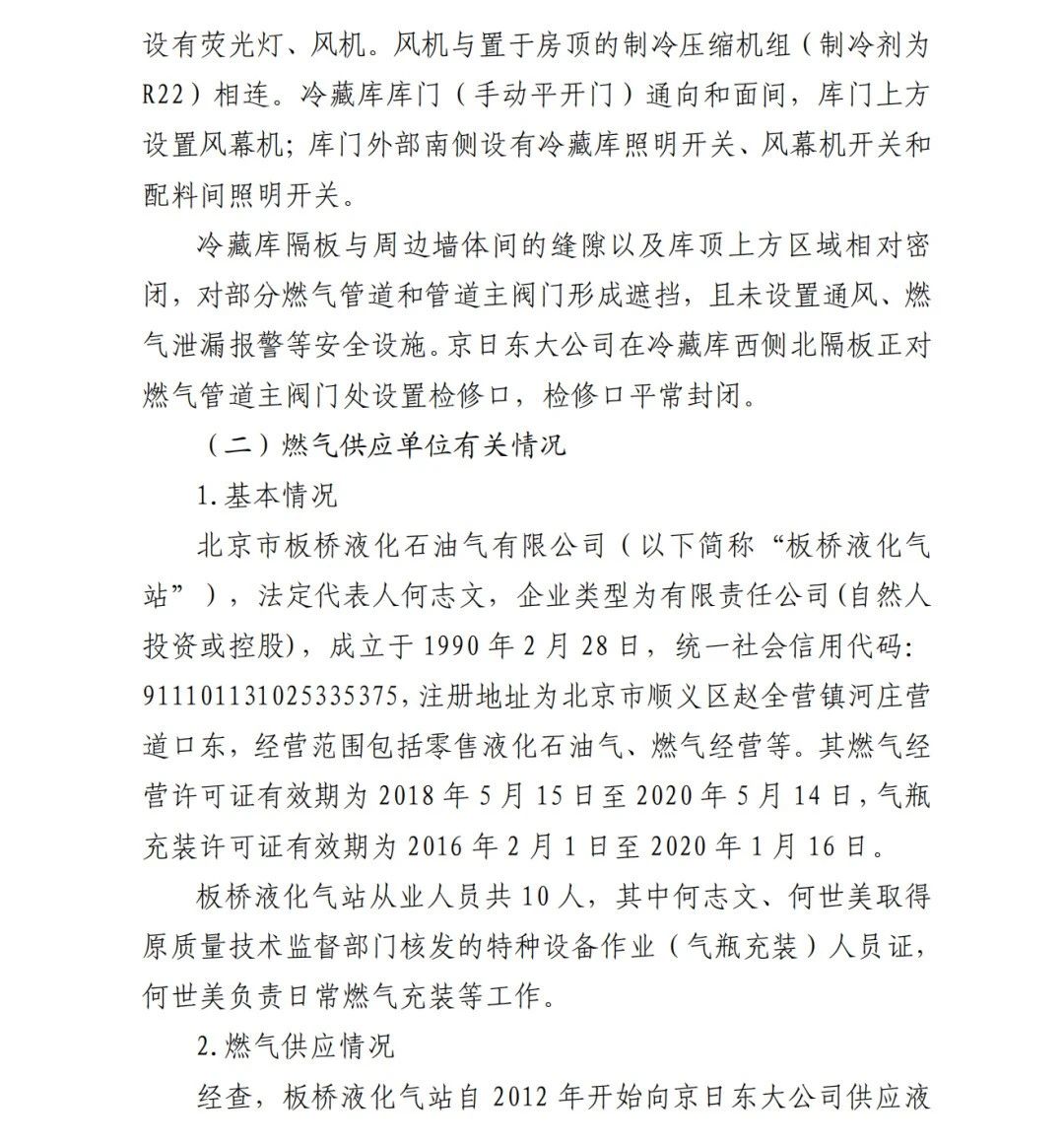 事故調查報告顯示:方勇忠2006年負責京日東大公司一期生產車間建設工作,期間未委托具有相應資質的施工單位,而組織本單位人員自行建設安裝燃氣設施,導致燃氣設施安全隱患長期存在。另外,方勇忠2018年負責一期生產車間內新建冷藏庫建設,將部分管道、閥門等燃氣設施封閉在通風不良的場所內,且未設置通風、燃氣泄漏報警等安全設施,因而對事故發(fā)生負有直接責任。