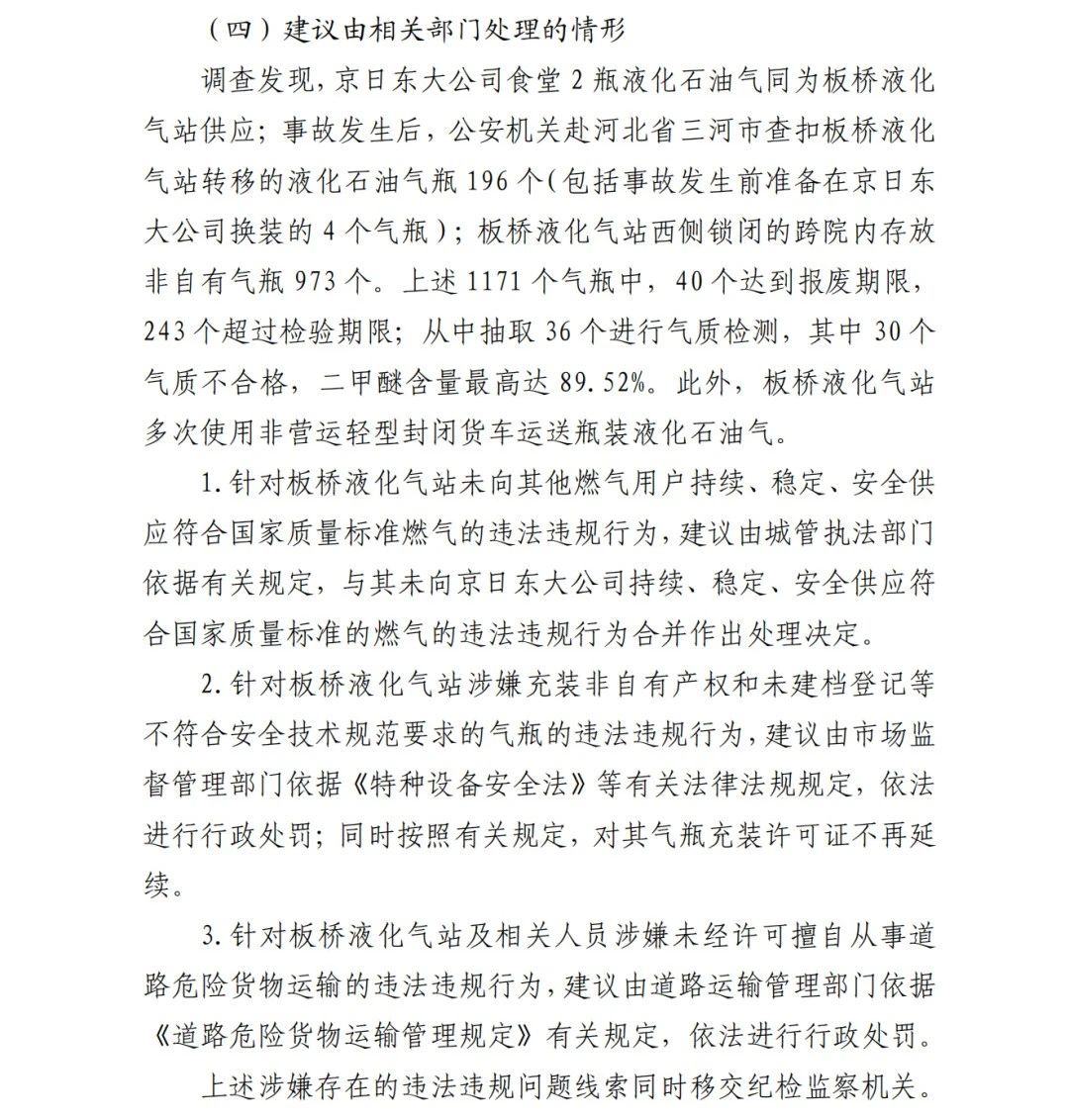5.何志文,板橋液化氣站法定代表人,全面負責板橋液化氣站日常工作。未組織對京日東大公司一期生產車間燃氣管道主閥門等燃氣設施定期開展安全檢查;與京日東大公司簽訂供氣合同,長期向京日東大公司供應添加二甲醚的不合格液化石油氣,導致燃氣管道主閥門法蘭墊片加速腐蝕、物理機械性能顯著下降,造 成燃氣泄漏引發(fā)事故,對事故發(fā)生負有直接責任,涉嫌重大責任事故罪。2019 年 2 月至 2019 年 12 月,非法購買二甲醚 401.38 噸,充裝至液化石油氣瓶內進行銷售,涉嫌生產、銷售偽劣產品 罪。2020 年 1 月 10 日,由順義區(qū)人民檢察院批準逮捕。