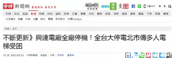 報道還提到,新北市今(13)日接獲板橋、新店、五股、土城、蘆洲、中和、樹林皆有大范圍停電情形,目前新北119接獲4件火警查看(皆因停電造成發(fā)電機啟動冒白煙)、2件電梯受困(均已脫困無大礙),相關(guān)停電原因查詢中。