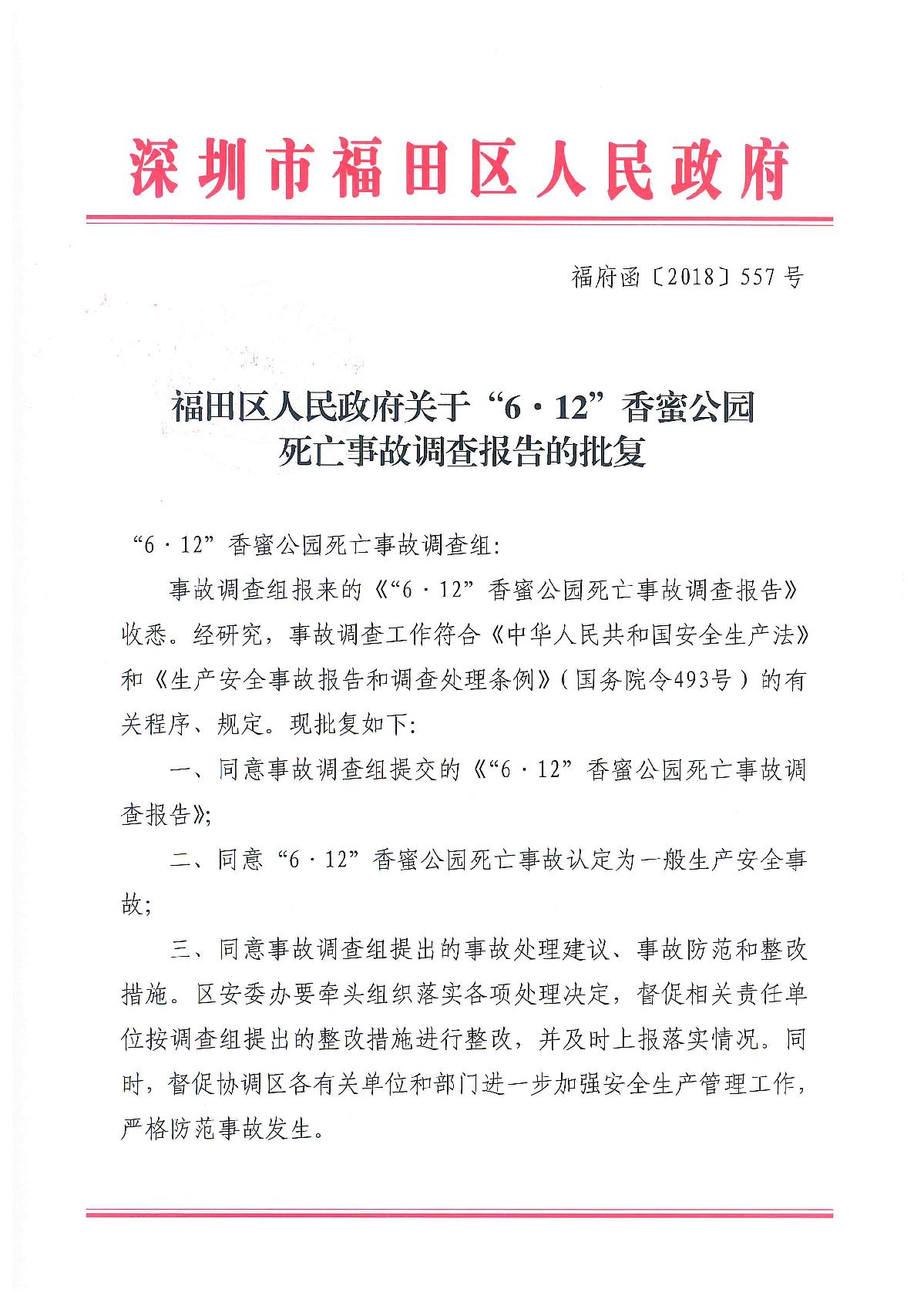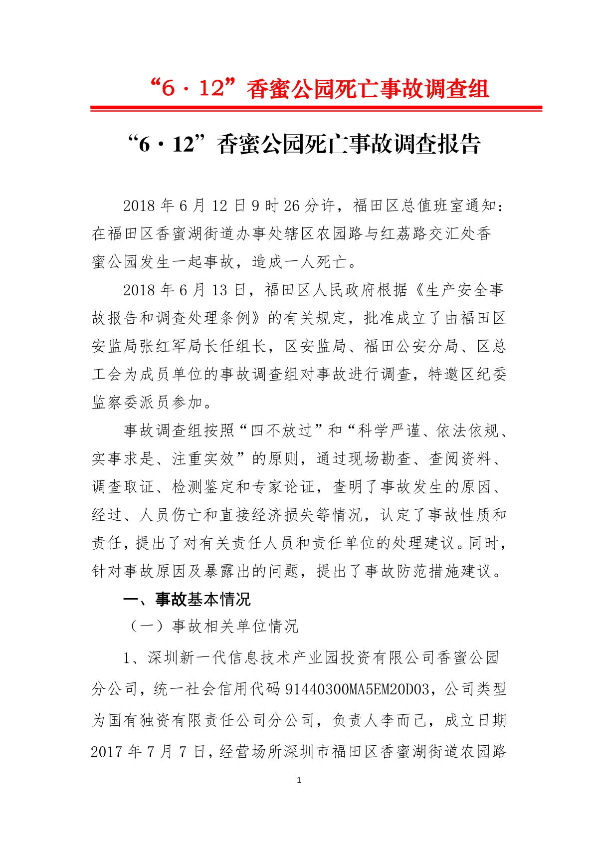 “6.12”香蜜公園死亡事故調(diào)查報(bào)告