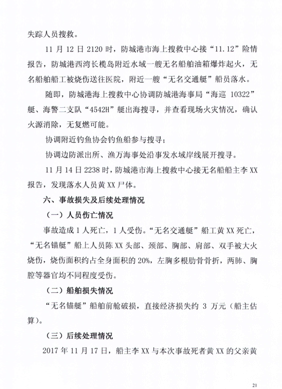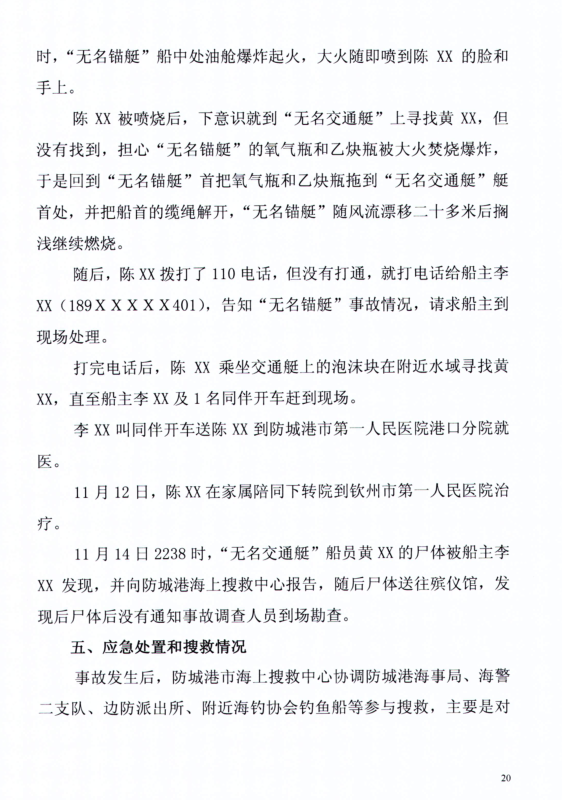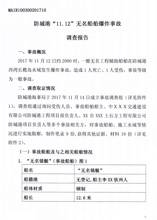 防城港“11.12“無名船舶爆炸事故調(diào)查報(bào)告