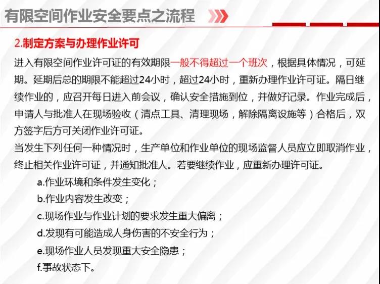 一要立即開展有限空間安全風(fēng)險(xiǎn)排查。春節(jié)假期剛過(guò),各類企業(yè)集中復(fù)工復(fù)產(chǎn),涉及有限空間作業(yè)安全的檢維修、調(diào)試行為增多,加之氣溫逐漸升高,造成有限空間中有毒有害氣體集聚,安全風(fēng)險(xiǎn)加劇。各地各有關(guān)部門要督促涉及有限空間作業(yè)的工礦商貿(mào)企業(yè)以及市政工程、垃圾發(fā)電、燃?xì)?、熱力、排水、衛(wèi)生、環(huán)保等重點(diǎn)單位、重點(diǎn)區(qū)域、重點(diǎn)場(chǎng)所開展全方位的風(fēng)險(xiǎn)隱患排查。對(duì)發(fā)現(xiàn)的風(fēng)險(xiǎn)隱患,企業(yè)要逐一登記造冊(cè),向負(fù)有安全監(jiān)管職責(zé)的部門報(bào)告,并按照《有限空間作業(yè)安全指導(dǎo)手冊(cè)》(應(yīng)急廳函〔2020〕299號(hào))要求落實(shí)各項(xiàng)防范措施。
