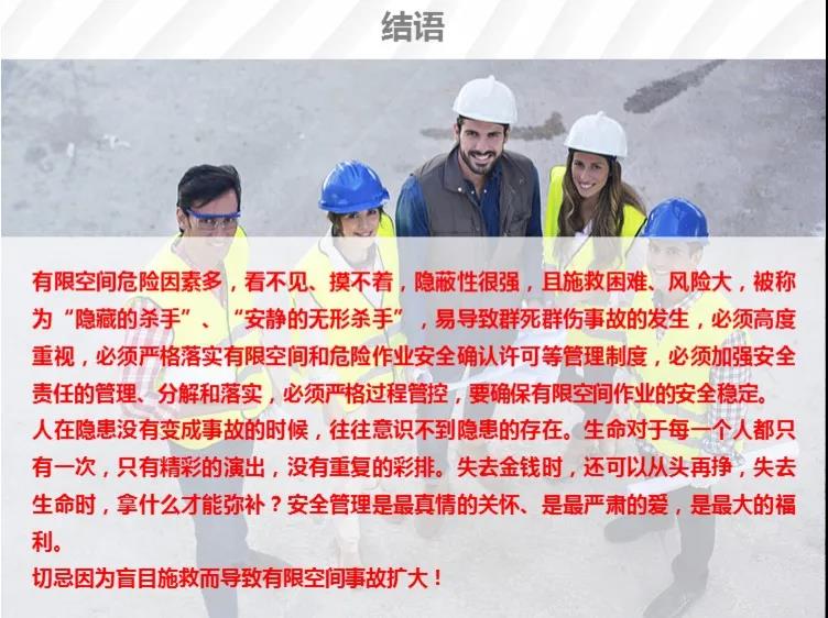 事故暴露出企業(yè)和從業(yè)人員對(duì)有限空間風(fēng)險(xiǎn)辨識(shí)不清、試生產(chǎn)過(guò)程中安全防范措施不到位、盲目施救導(dǎo)致傷亡擴(kuò)大等問(wèn)題,也暴露出監(jiān)督管理存在薄弱環(huán)節(jié)等問(wèn)題。省政府領(lǐng)導(dǎo)高度重視,王清憲省長(zhǎng)、鄧向陽(yáng)常務(wù)副省長(zhǎng)、張紅文副省長(zhǎng)先后作出批示,要求妥處善后,查清原因,嚴(yán)格追責(zé)。為深刻吸取事故教訓(xùn),堅(jiān)決遏制類似事故再次發(fā)生,現(xiàn)提出以下工作要求,請(qǐng)結(jié)合本地區(qū)本部門實(shí)際認(rèn)真貫徹執(zhí)行。