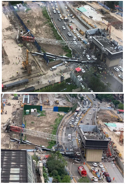 大臂造成非常嚴(yán)重的交通事故,下面來看履帶吊車身這邊的工地現(xiàn)場(chǎng),從視頻上看,疑似是地面塌陷造成的事故(目前具體事故原因還在調(diào)查)