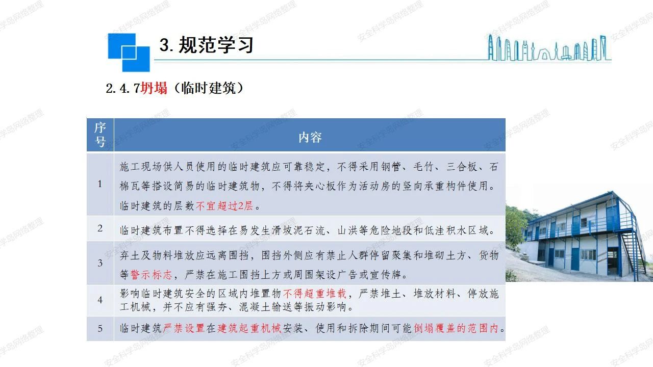 在施工中發(fā)生的坍塌事故主要是:現(xiàn)澆混凝土梁、板的模板支撐失穩(wěn)倒塌、基坑邊坡失穩(wěn)引起土石方坍塌、拆除工程中的坍塌、塔吊等起重設(shè)備的坍塌、施工現(xiàn)場(chǎng)的圍墻及在建工程屋面板質(zhì)量低劣坍塌。