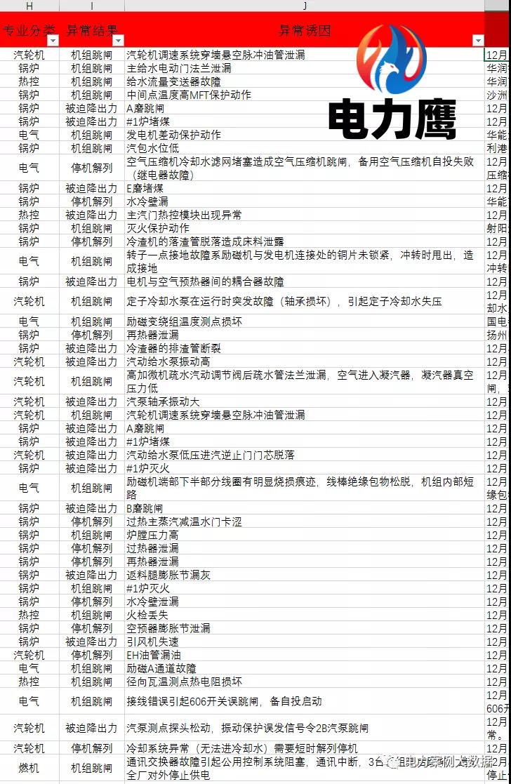 歷年12月電廠異常事故統(tǒng)計數(shù)據(jù)