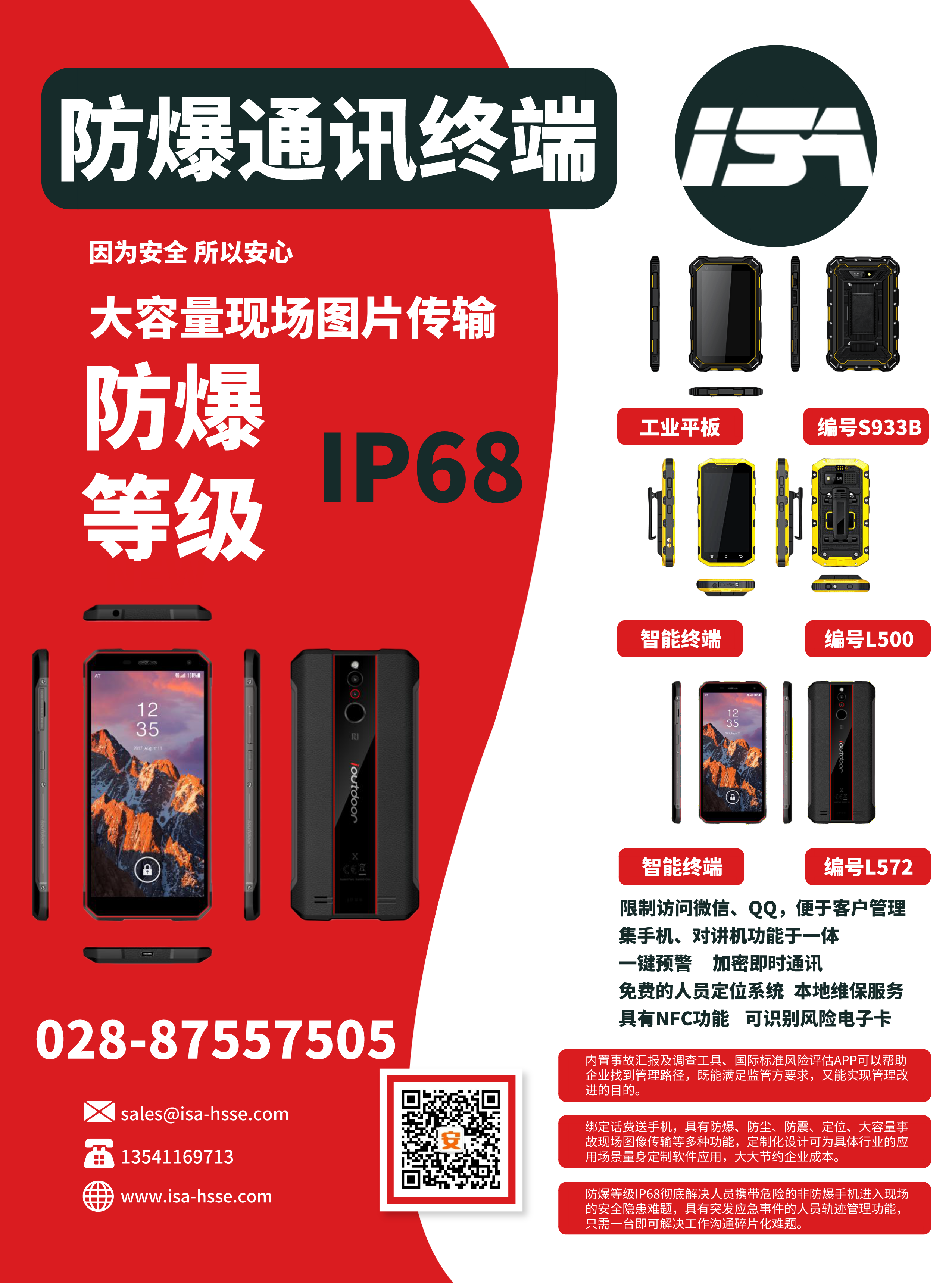 公司與運(yùn)營(yíng)商推出一款集手機(jī)、對(duì)講機(jī)于一體的防爆手持終端,包括各類商業(yè)安全軟件的使用、圖像回傳功能、一鍵報(bào)警、限制訪問(wèn)微信QQ、NFC等功能。內(nèi)含事故管理APP(隱患排查、風(fēng)險(xiǎn)評(píng)估),0元開(kāi)卡,綁定即送話費(fèi)流量,支持定制化服務(wù)。